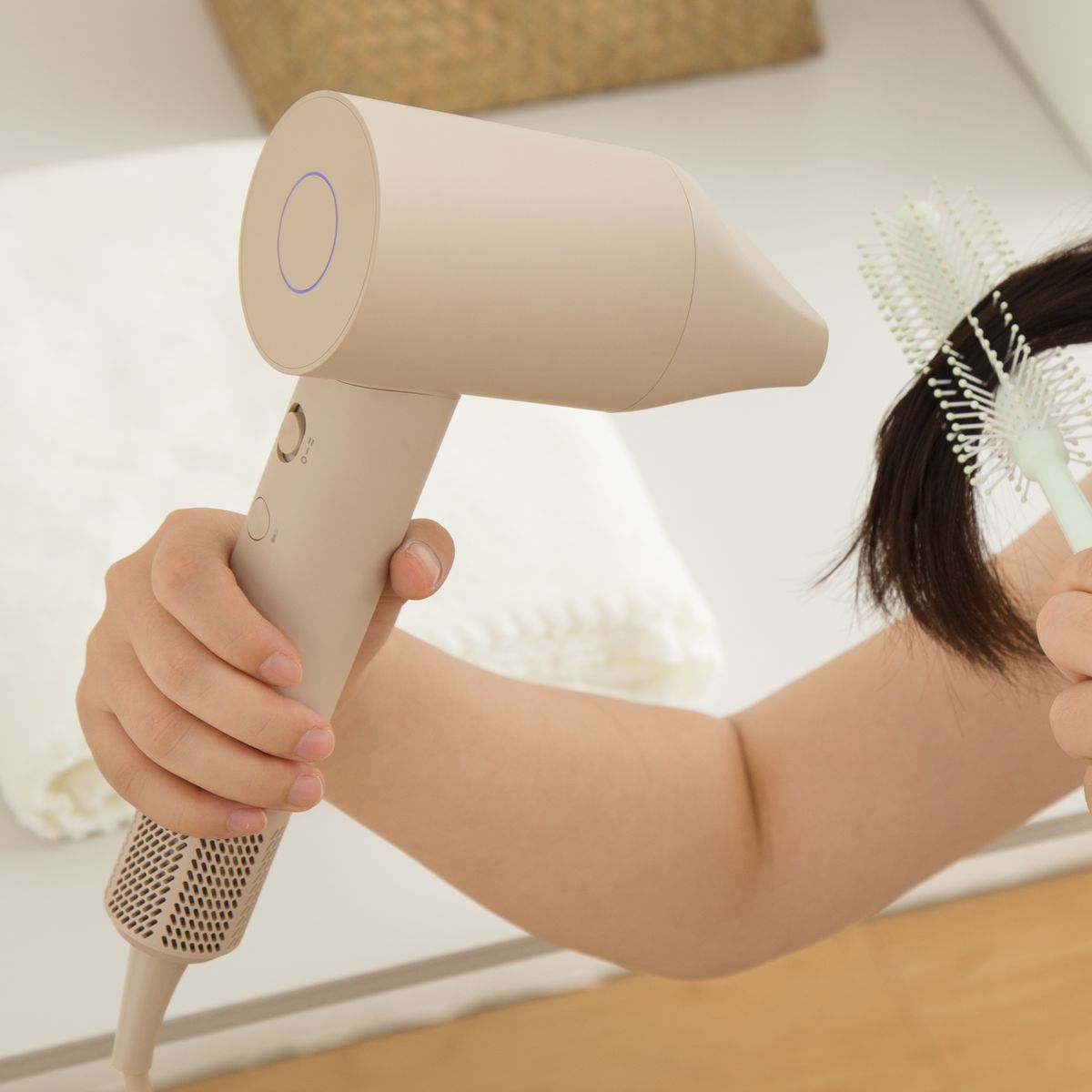 - 採用每分鐘11萬轉高速無刷直流摩打,可輸出20m/s強勁風力,快速吹乾秀髮。