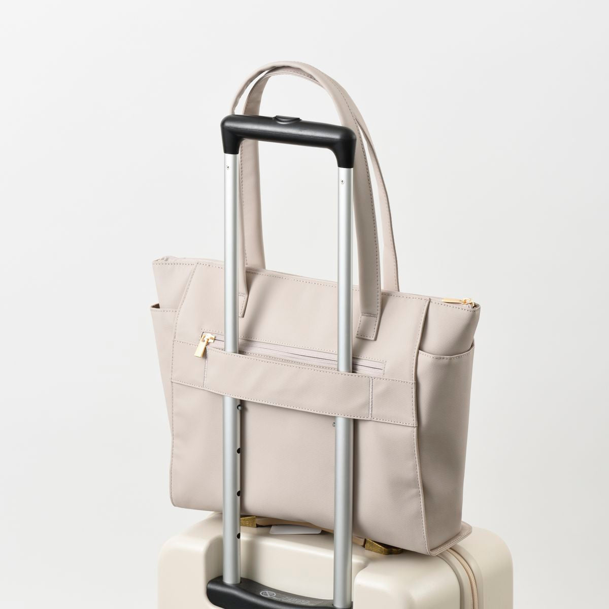背面設有實用的行李箱固定帶,可輕鬆套在行李箱拉桿上,讓您在商務出差或旅行時更加輕鬆便捷。