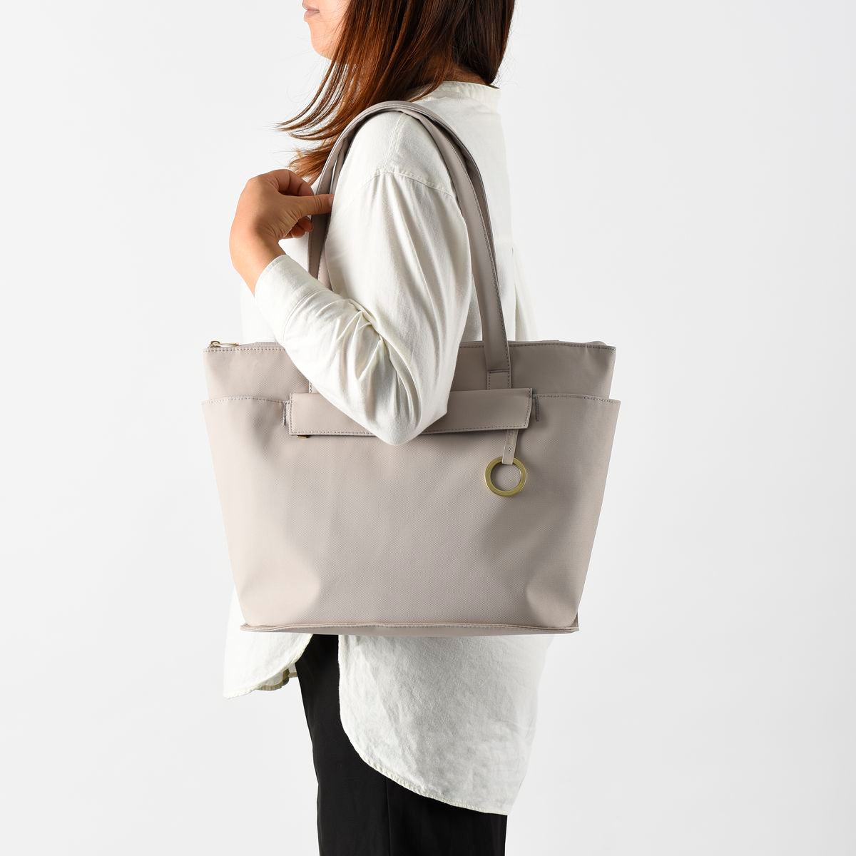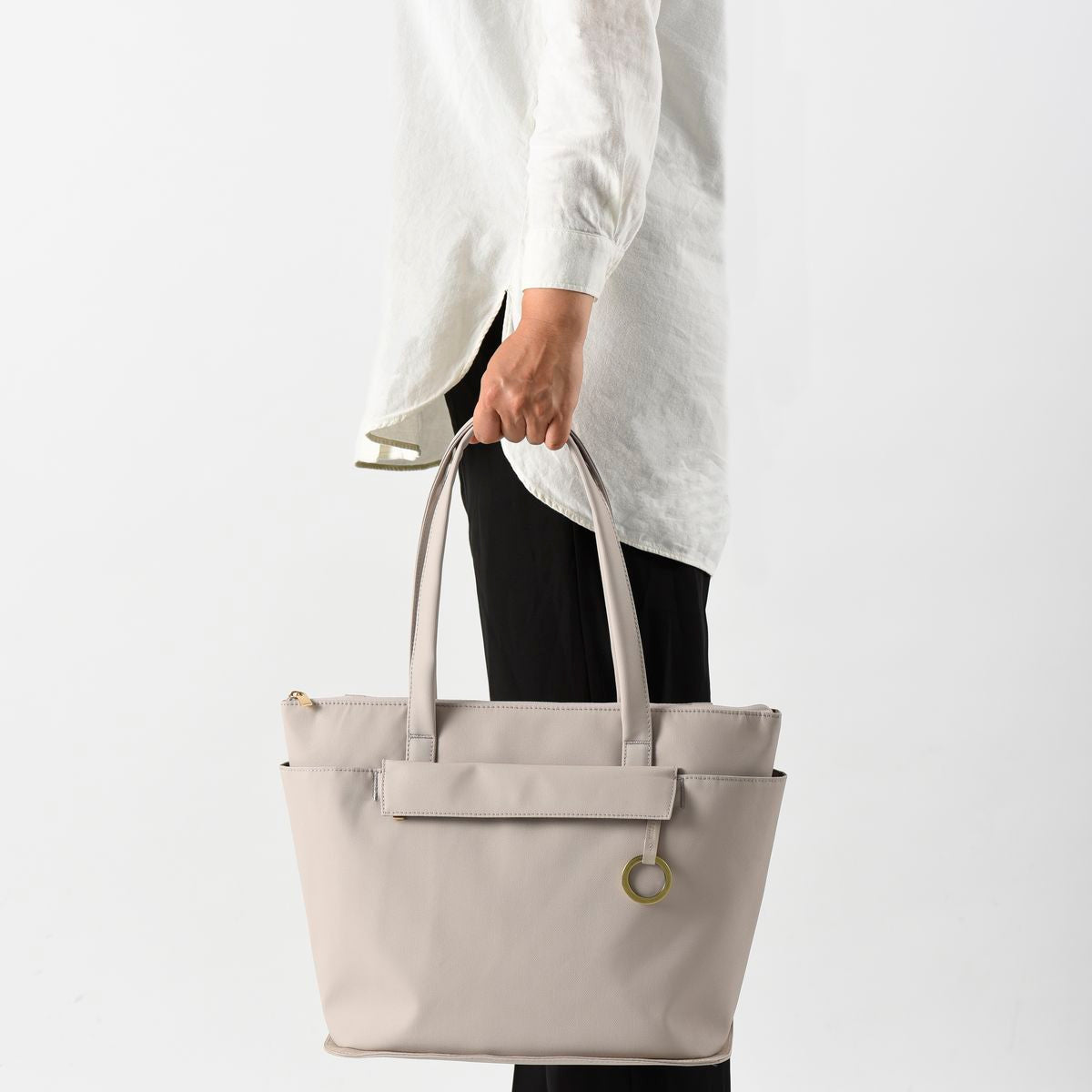 手提袋兩側設有開放式口袋,方便您快速存取水瓶、雨傘或手機等常用物品。