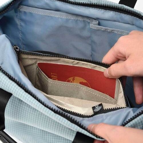 防盜刷面料的拉鍊口袋設計,旨在保護您的信用卡、護照等內含RFID晶片的物品,防止未經授權的掃描。請注意,它不能完全防止所有電磁信息。