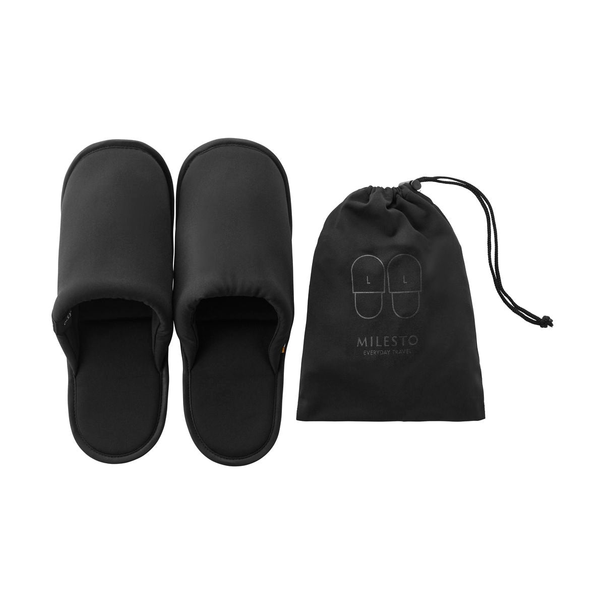 MILESTO UTILITY 可水洗便攜拖鞋,專為方便攜帶而設計,其可折疊收納特性,搭配柔軟材質包覆雙腳,即使長時間穿著仍十分舒適。可水洗設計方便保持清潔,並附有收納用束口袋,適合旅行、出差或辦公室使用。L號適用於約 27 cm腳長者。