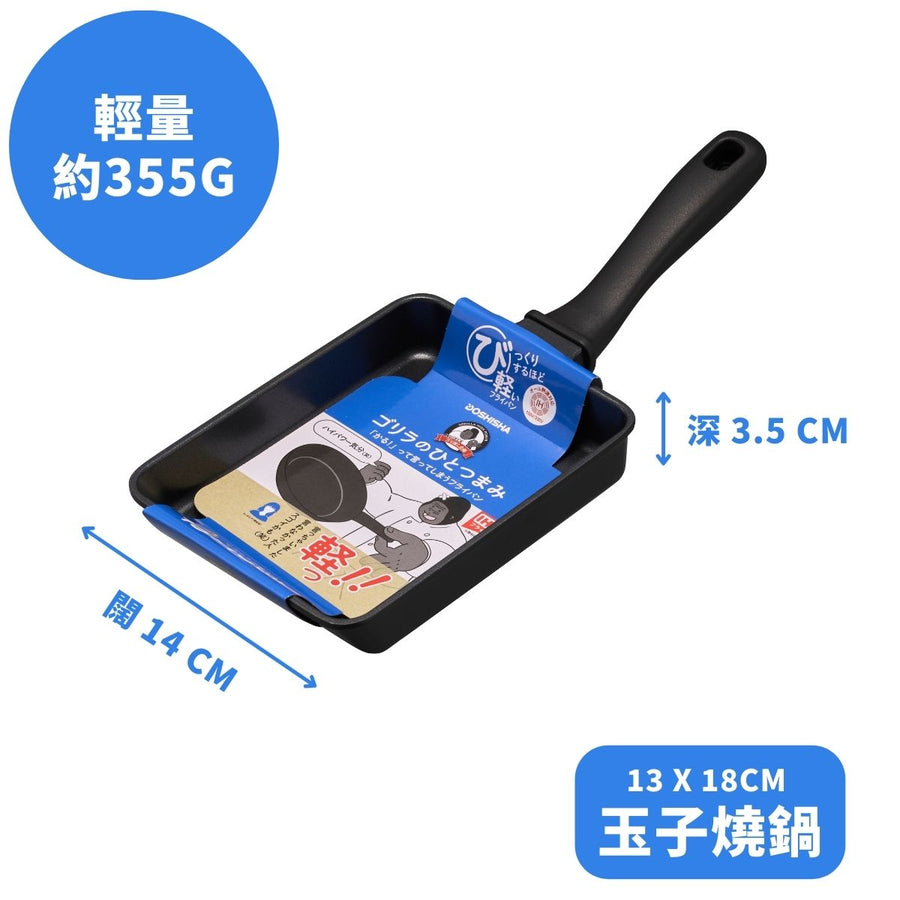 DOSHISHA 大猩猩IH超輕玉子燒易潔平底鍋 13×18cm | GRFPIH13BK