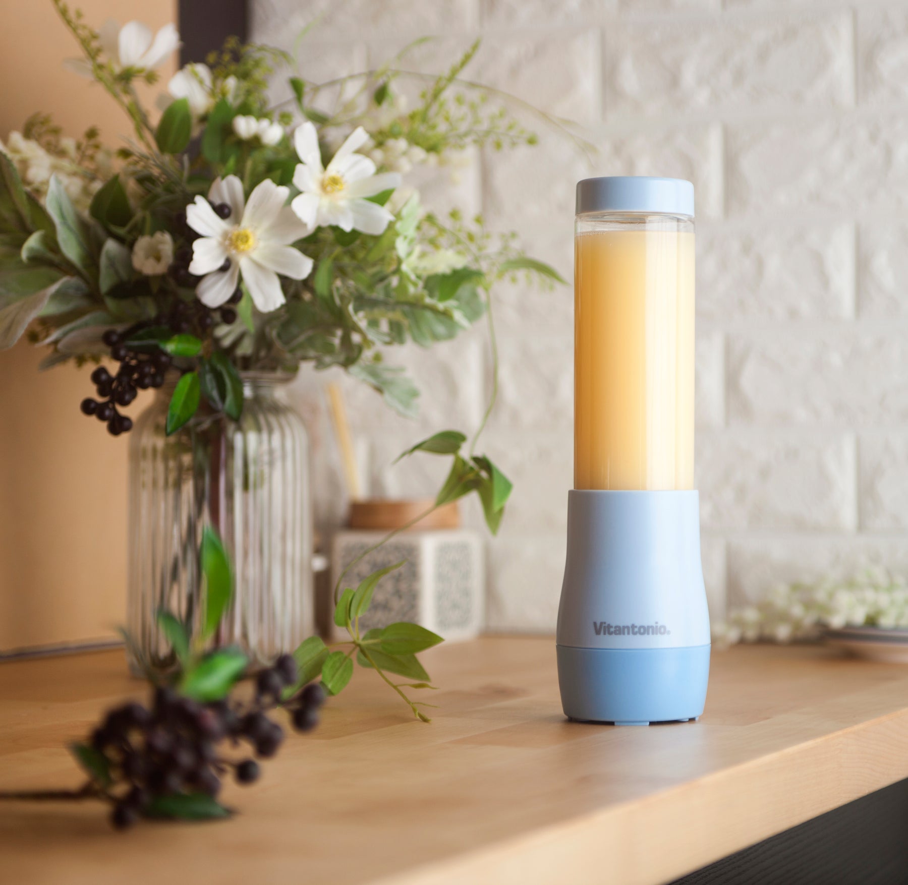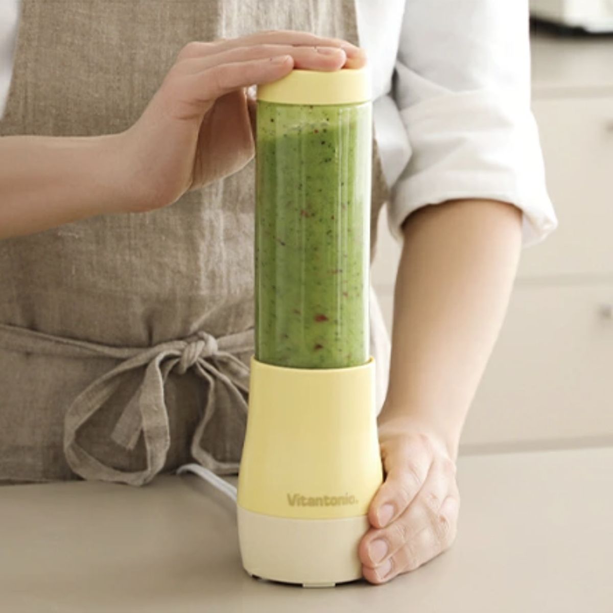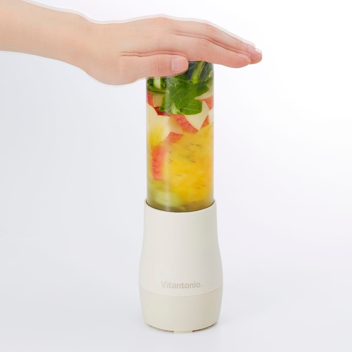 Vitantonio 便攜式攪拌機,專為一人份的完美份量而設計,讓您輕鬆快速製作健康美味的蔬果冰沙。體積雖小卻動力十足,連冰塊也能輕鬆攪碎。只需按壓即可操作,製作完成後可直接用瓶身飲用。纖巧的瓶身設計方便攜帶,讓您在忙碌的日常中也能輕鬆享受冰沙生活。