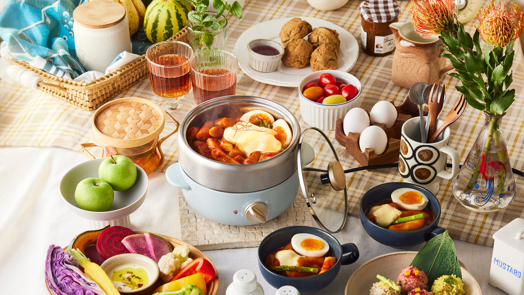 集煮、煎、蒸、炊於一身,配備煮食鍋、蒸架及易潔煎鍋,一機即可滿足火鍋、即食麵、蒸點心、煎牛排或煮菜等各種烹調需求。