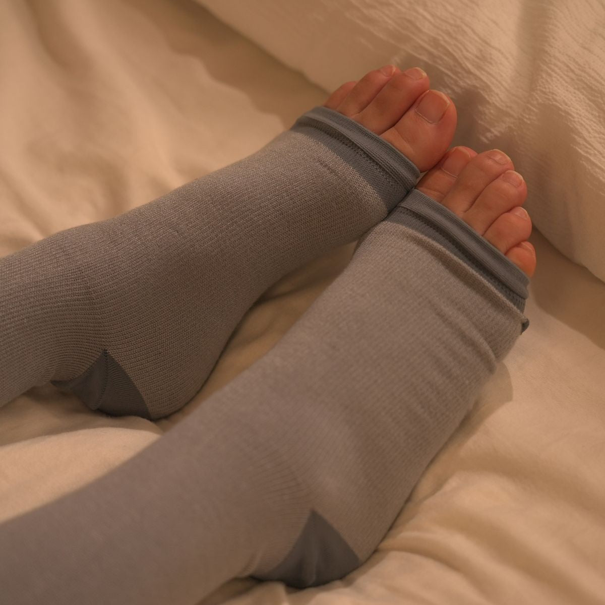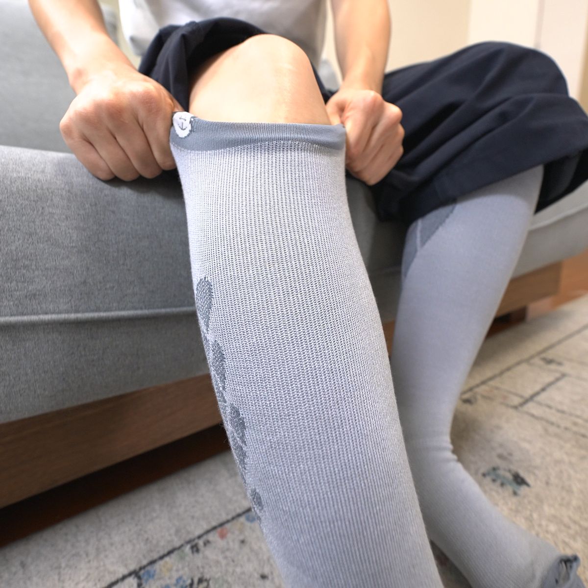 - 可全天候穿著,作為日常休閒襪或睡眠襪使用,提供持續的腿部護理。
