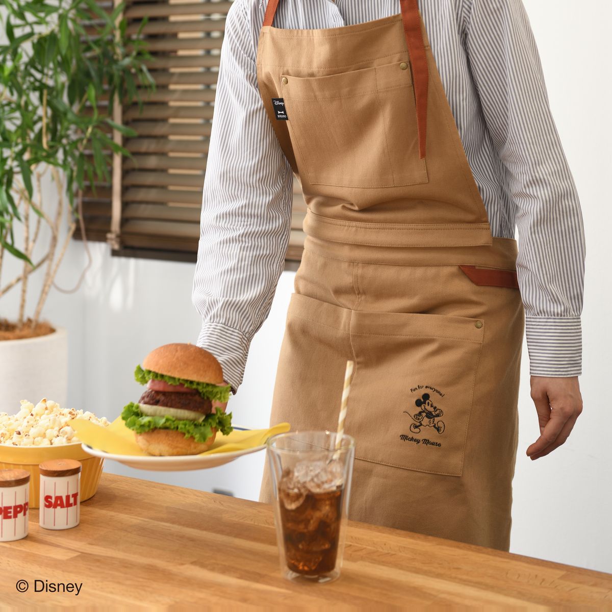 圍裙上帶有低調精緻的米奇刺繡圖案,為您的日常使用增添一份迪士尼的樂趣與細節。
