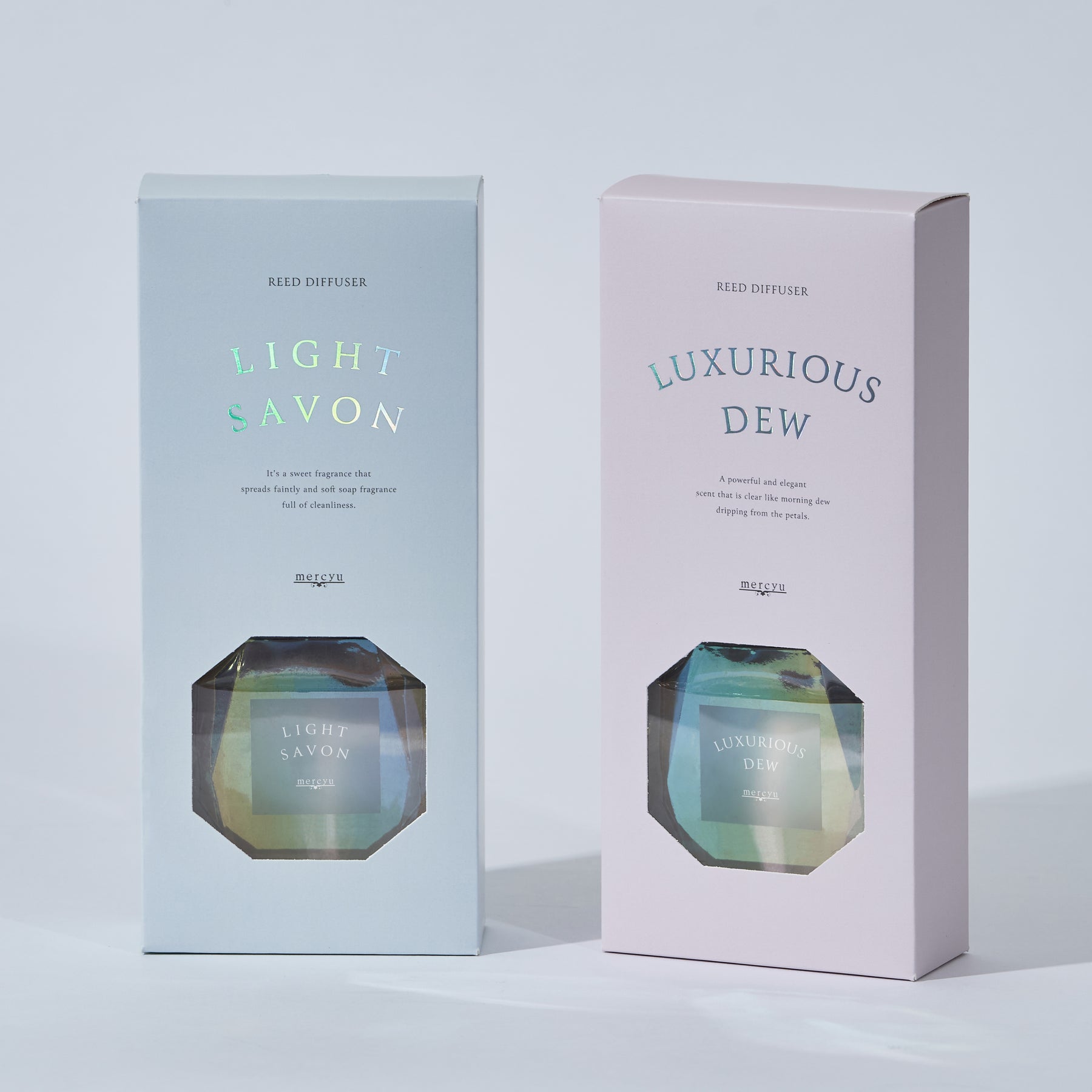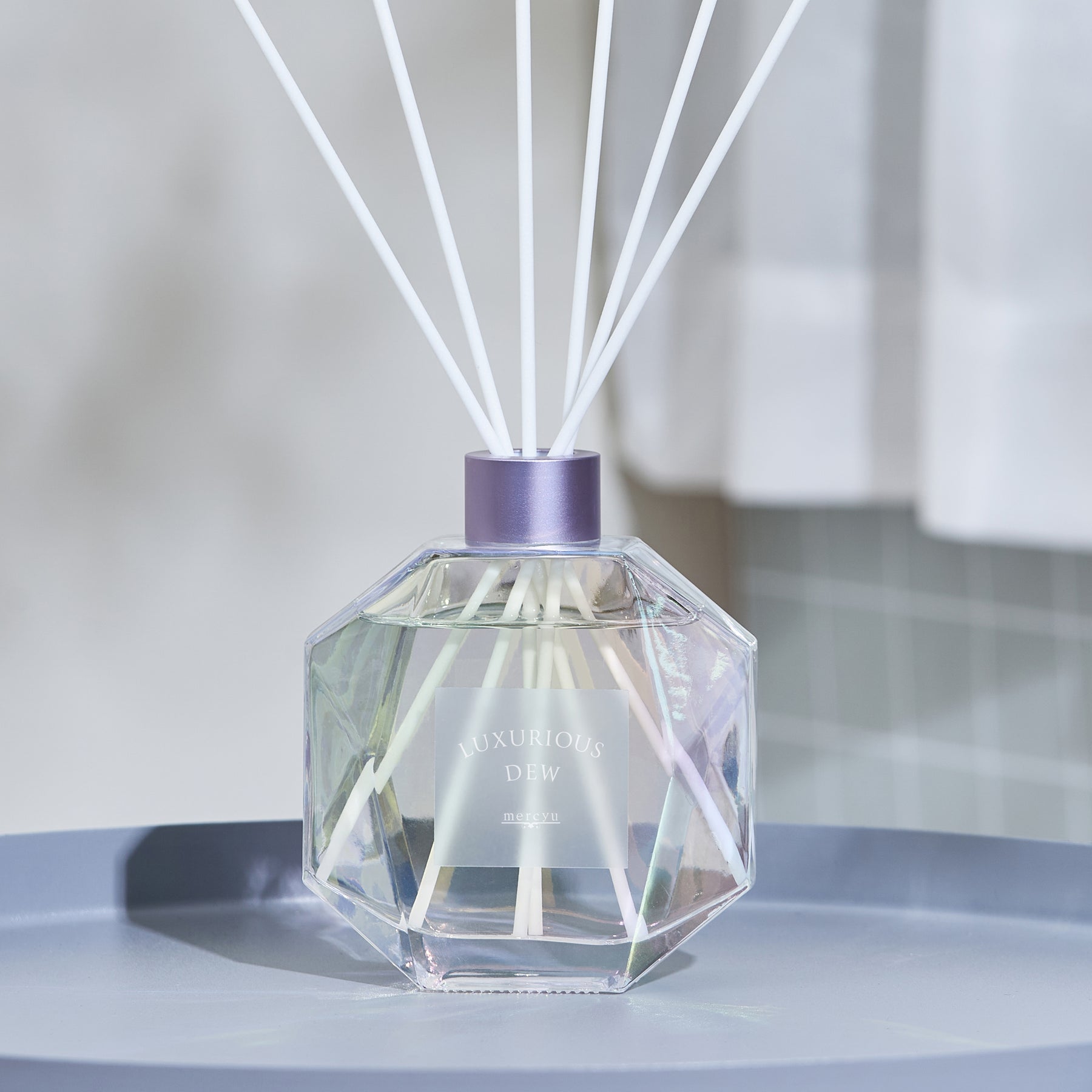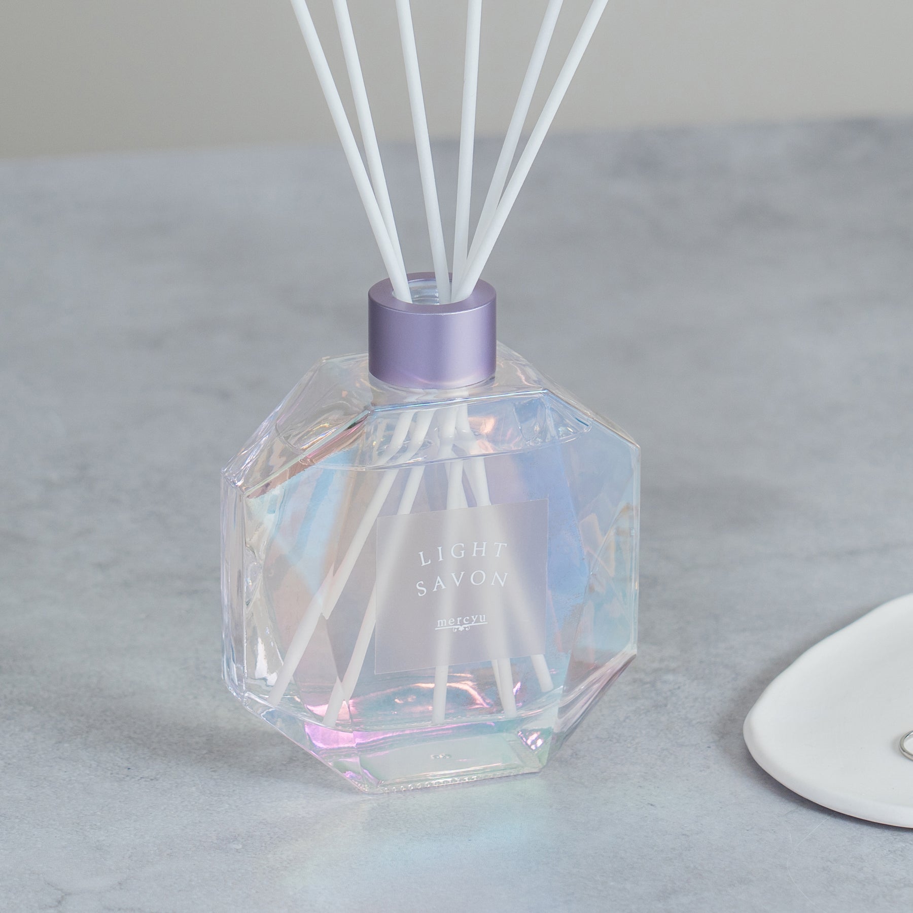 這款藤枝擴散器採用美麗的極光玻璃瓶,能變換出彩虹般的色彩。八角切割玻璃反射光線,使房間色彩繽紛。纖薄的瓶身可放置在有限的空間內。我們精選了2種受歡迎的香氣,以配合其華麗而清新的美感。瓶身設計和香氣營造出奢華的氛圍。包裝也飾有極光燙金,呈現優雅的質感,非常適合送禮。