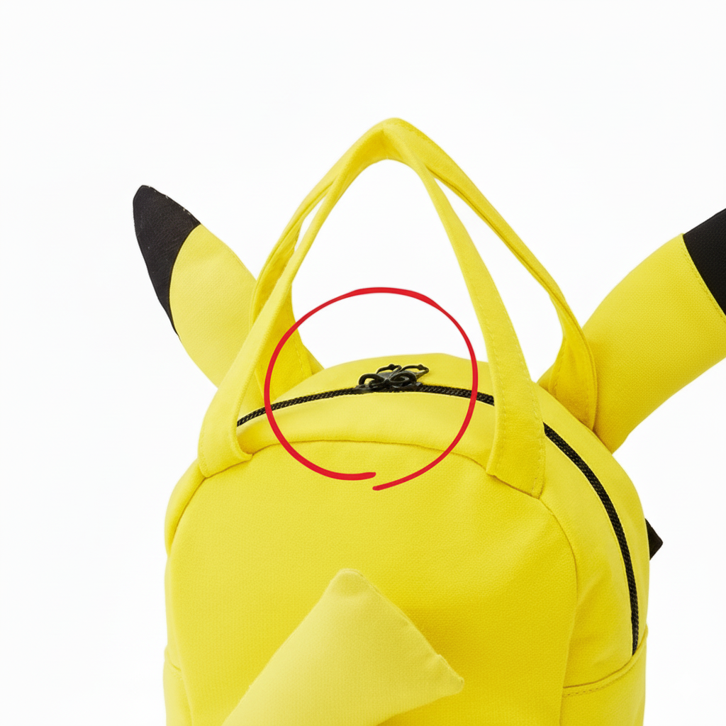 手提袋背面飾有比卡超的閃電尾巴,細節精緻,從任何角度都充滿魅力。