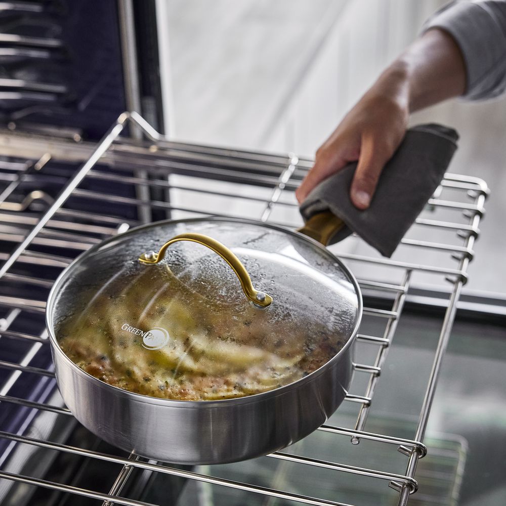 GreenPan Padova 不鏽鋼深煎鍋,將卓越設計與世界級性能完美結合。其專業三層不鏽鋼鍋身,搭配耐用強化玻璃蓋,無論是燉煮、煎炒,都能輕鬆應對,為您帶來無與倫比的烹飪體驗。