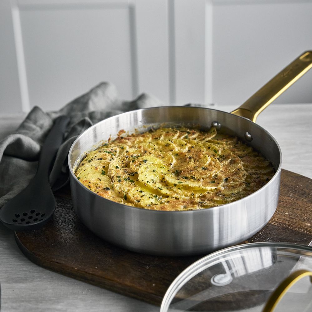 Padova 不鏽鋼系列是美學與功能的完美結合。這款 24 厘米深煎鍋配有強化玻璃蓋,非常適合燉煮、煎炒以及需要觀察烹飪進度的料理,為您的廚房帶來專業級的烹飪體驗。