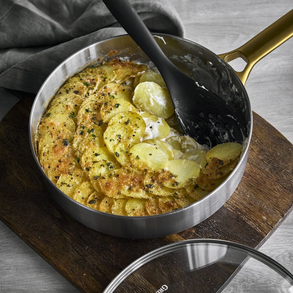 獨特的金色手柄設計,不僅具備抗磨損與防腐蝕塗層,握感舒適,更為您的廚房增添一份時尚與專業感。