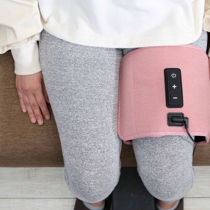 一台機器即可同時用於小腿和大腿,操作簡單,只需按下電源按鈕即可開始,並可透過[+][-]按鈕調整強度。