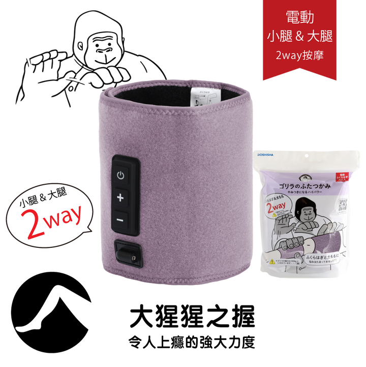Doshisha 「大猩猩之握 大腿小腿 兩用按摩器」專為舒緩小腿和膝蓋疲勞設計,其強勁的泵壓和氣囊提供令人上癮的「痛而舒適」體驗,為您帶來獨特的猩猩級強效按摩系列。