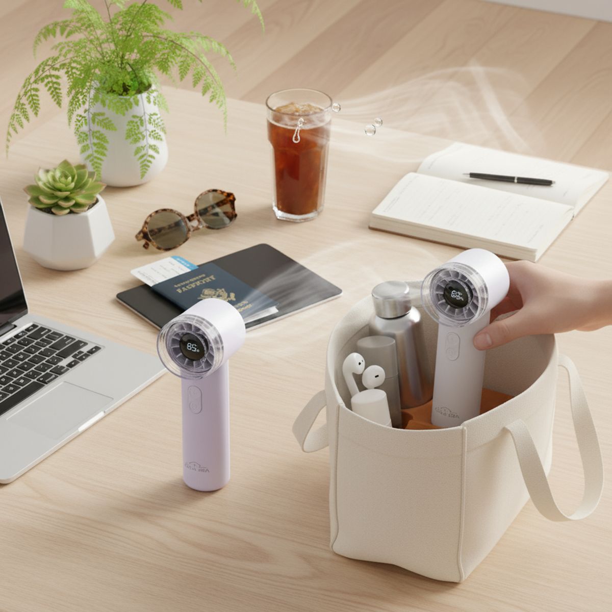 Casa Mia 迷你手提渦輪風扇,專為追求極致便攜與舒適的您而生。憑藉其輕巧設計和卓越性能,無論您身在何處,都能輕鬆享受清涼微風,為您帶來無與倫比的涼爽體驗。