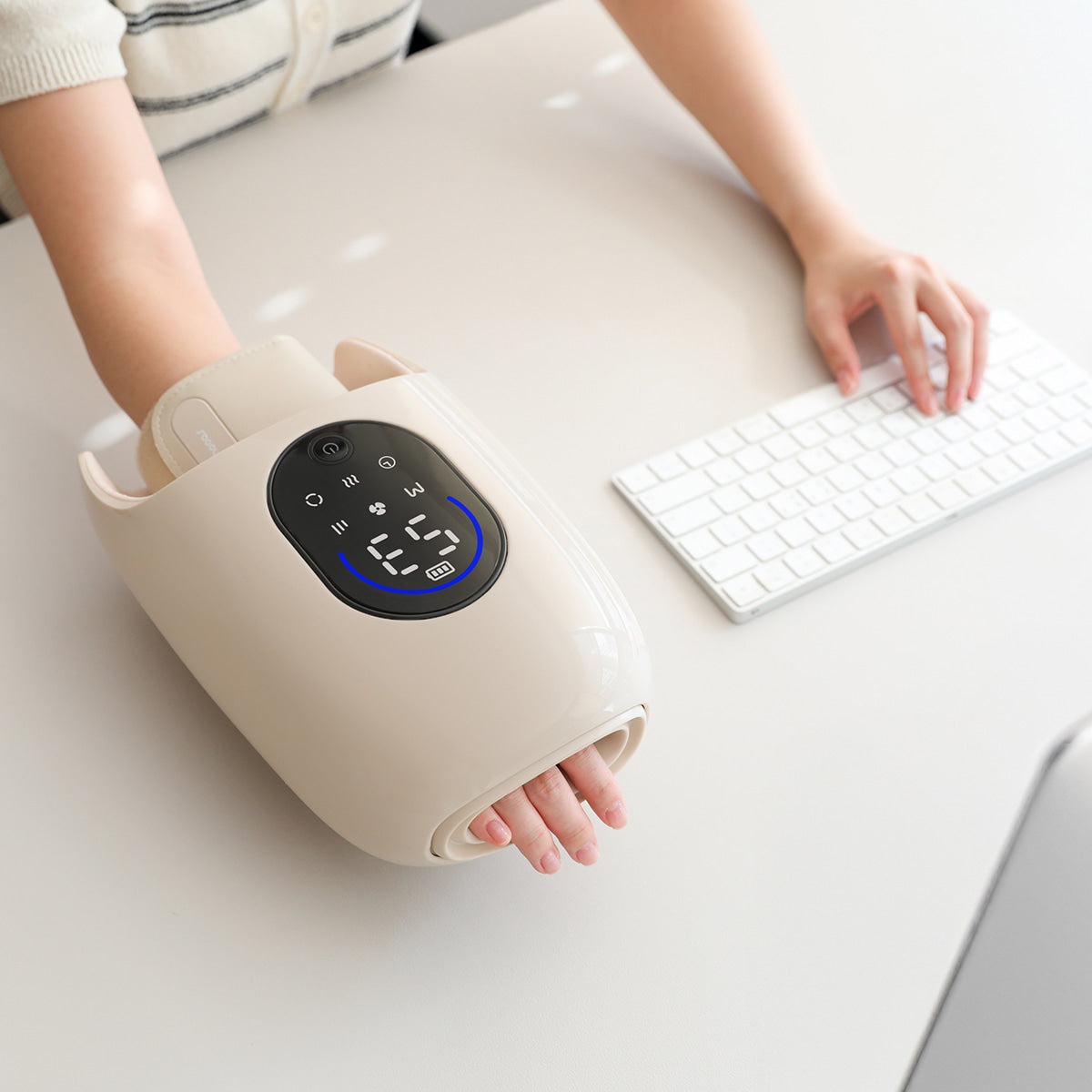 獨特的內建空氣循環系統,在按摩過程中提供舒適的涼爽感,避免手部過熱,確保長時間使用的舒適度,讓您享受清爽的按摩體驗。